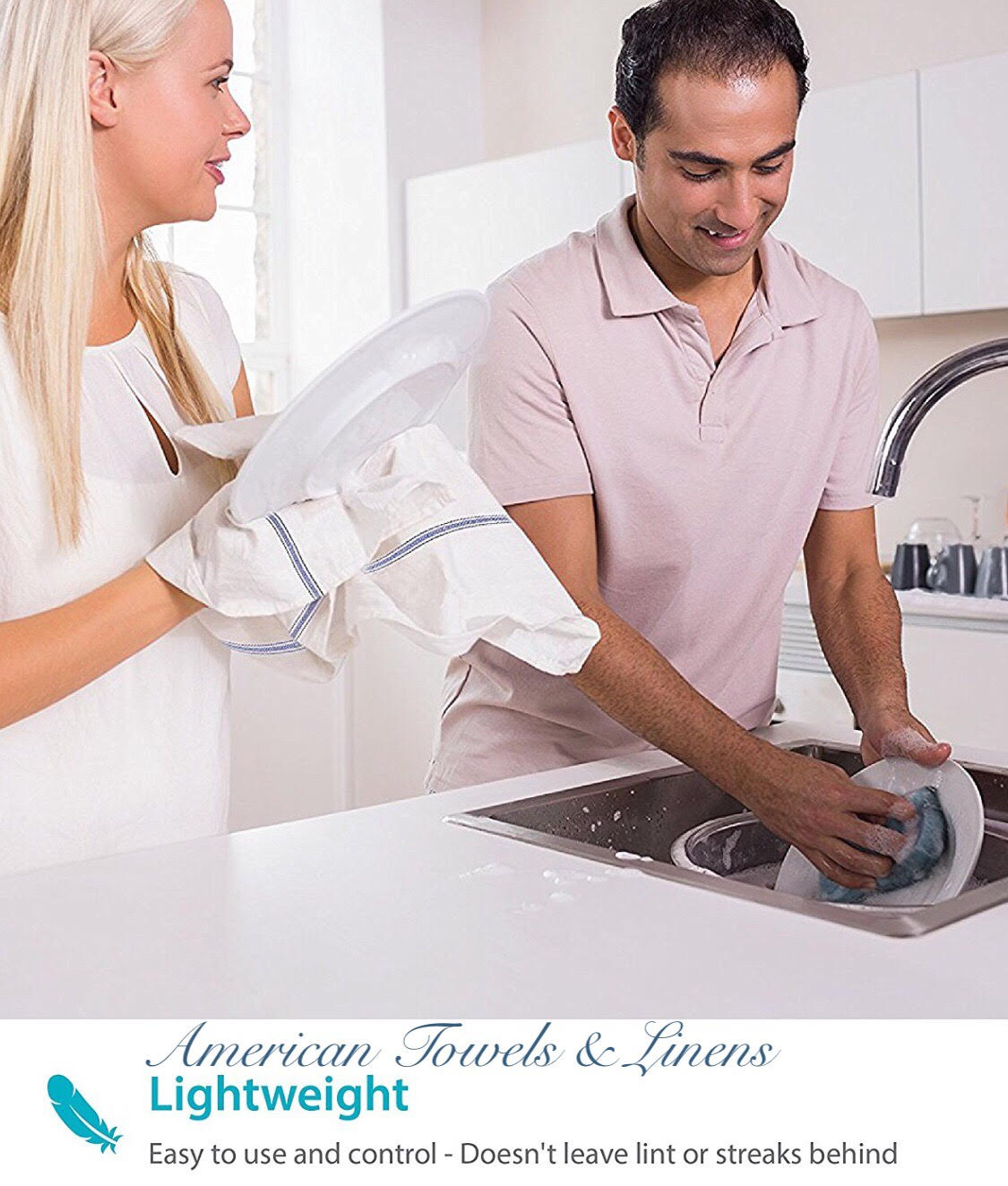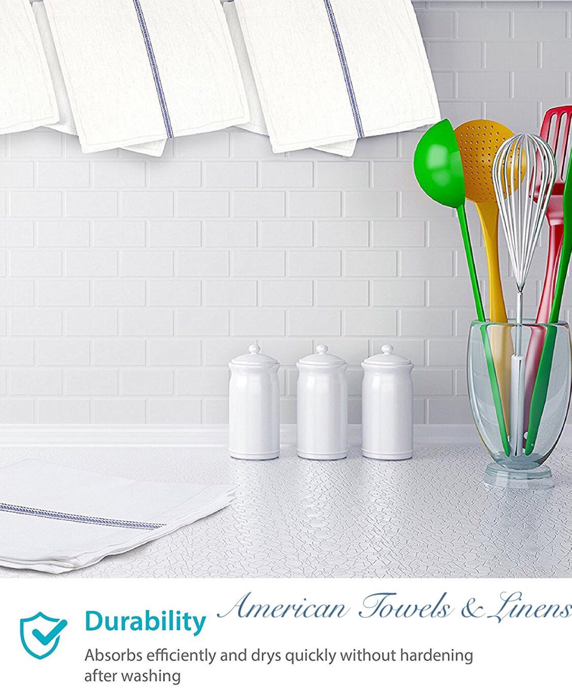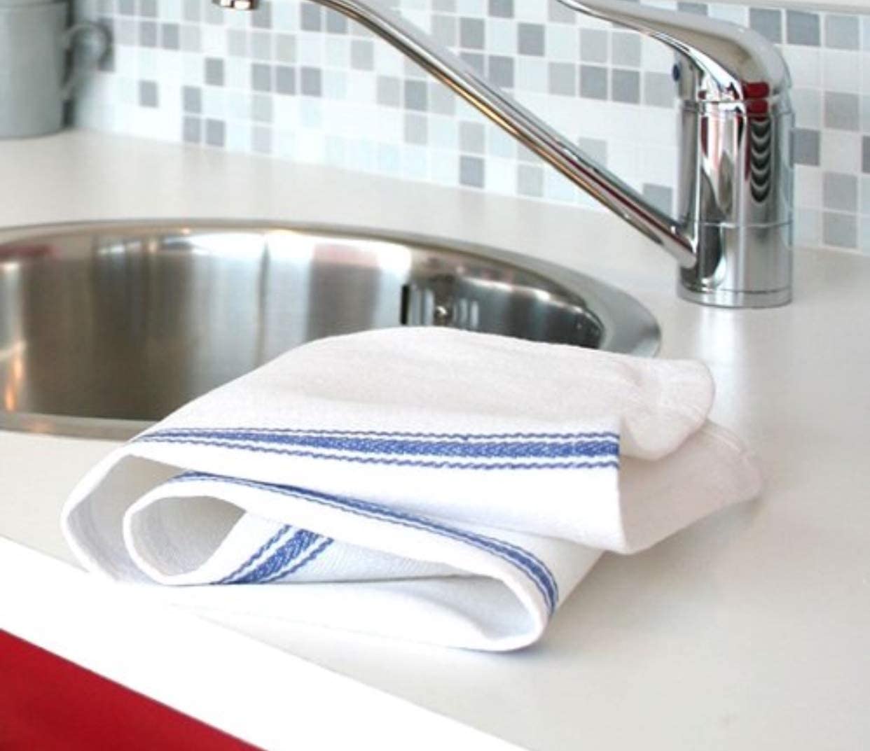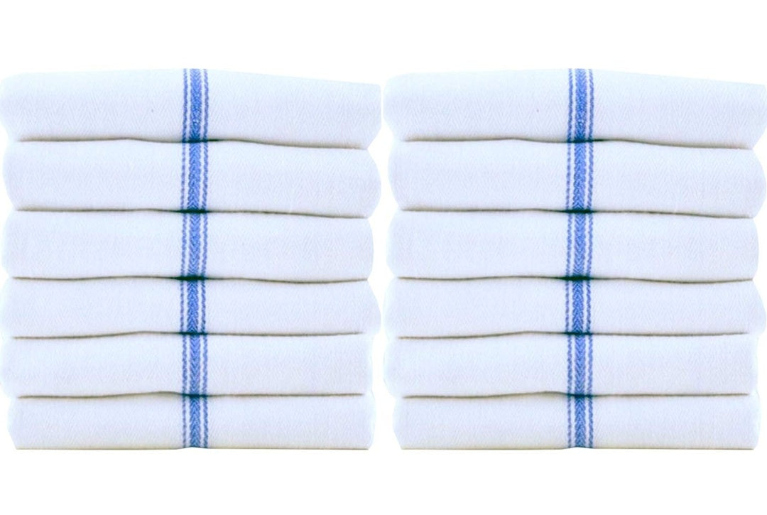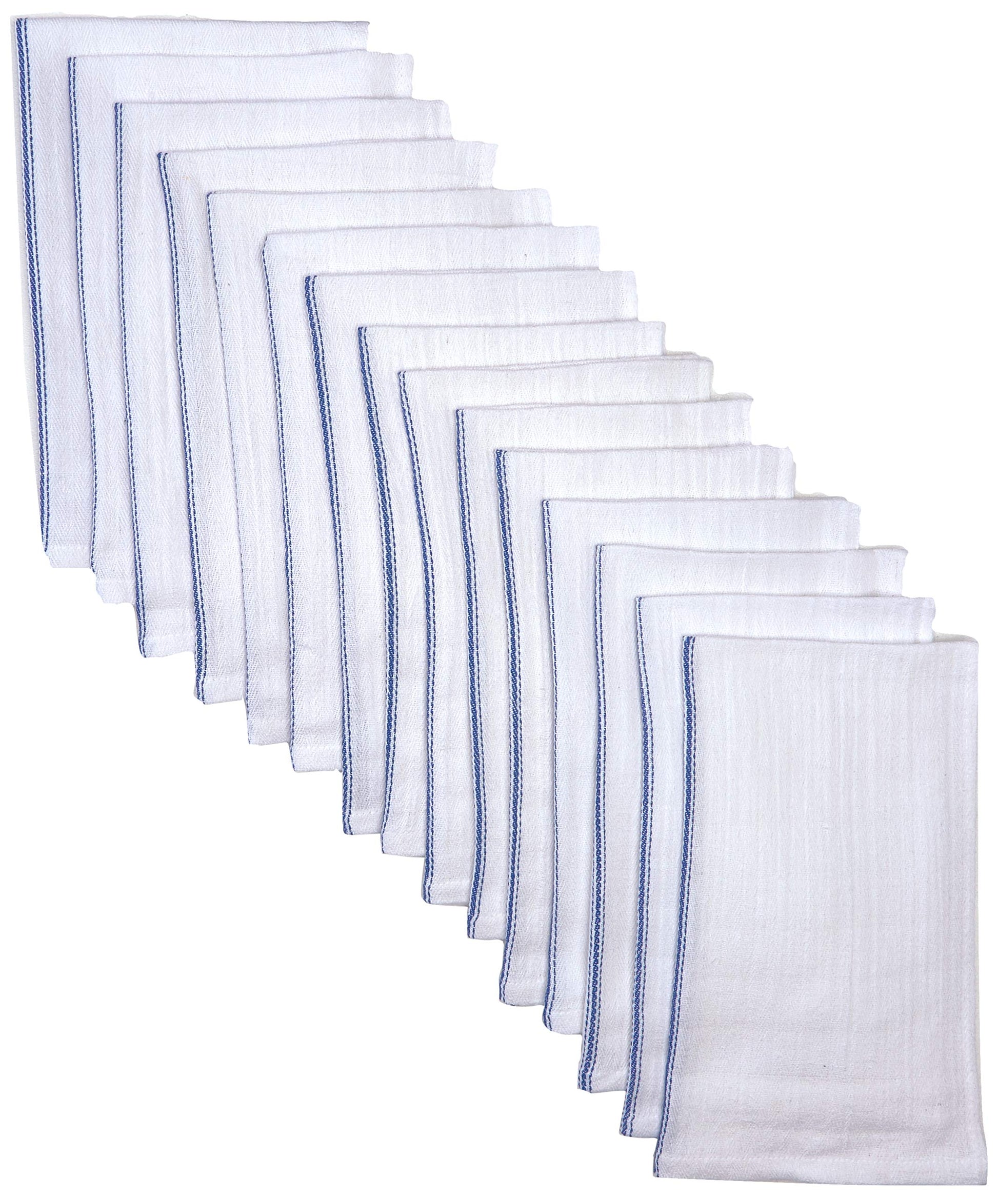 If you’re looking for a kitchen towel to soak up spills, try these kitchen white dish towels. These white tea towels from American Towels & Linens have a classic construction and a blue center stripe pattern with white color which means they’ll look great in just about any kitchen. This 100% natural cotton dish towel is built to last long with strong, durable fibers and won't scratch your fine silverware, plates, pots, or pans. This tea towel is lightweight, super absorbent, and dries quickly for less risk of mildew and bacterial build-up. White kitchen towels cotton can be used in every room of your home either for doing any cleaning task you have on your list. Tea towels for kitchen are machine washable and dry-able. You can use these cotton dish towels over and over again, saving money on paper towels. 15-pack ensures you have plenty of cotton tea towels at hand for cooking and cleaning needs in restaurants, kitchens, dinner tables, or just about anywhere in your home where spills are common. Towels for kitchen come in handy for drying hands and dishes, wiping counters, soaking up spills, and more. These absorbent towels are a great gift idea for new homeowners, newlyweds, and even yourself. Cotton Dish Towels for Kitchen Features :Dish towels cotton is a natural fabric that is durable Kitchen tea towels are lightweight and super absorbent Flour sack kitchen towels are great for cleaning up messes and spills Cotton dish cloths are durable enough for repeated use Dish cloth is easy to wash and dries quickly Kitchen towels white is a great gift to your friend & family Super Absorbent Kitchen Towels Specifications :Material: 100% Cotton Size: 15 x 26 inches Color: White Package Content: 15 Pack Cotton Flour Sack Towels. GET YOURS TODAY!