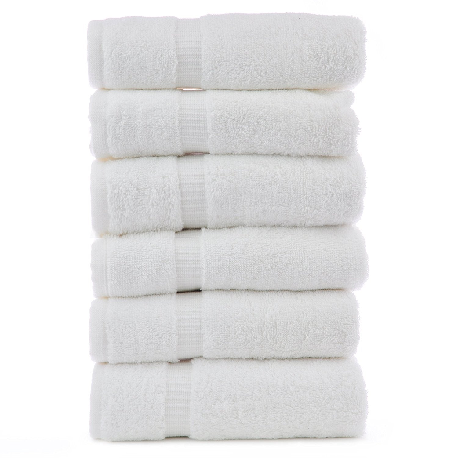 Luxury Cotton Hotel & Spa Hand Towel 16"x30" Set of 6 100% Ring Spun - Organic Eco-Friendly (Hand Towels, White)